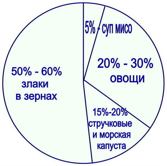 Стандартный макробиотический режим – (схема 1 «Тарелка») – это определенный процентный состав продуктов на день.