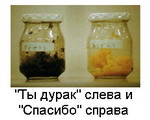 Через месяц, рис, которому говорили «спасибо», забродил, источая насыщенный приятный запах, похожий на аромат солода, тогда как рис, котоый постоянно слышал лишь слова «ты дурак», почернел и начал гнить. |
