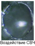 Затем мы берем пятьдесят чашек Петри (диаметром 5 см), заливаем в них воду и помещаем в холодильник при температуре – 25 С или ниже. Когда через три часа чашки вынимаются, в них уже сформировались небольшие (около 1 см) гранулы льда, принявшие форму шара вследствие поверхностного натяжения. Каждая из гранул освещается и рассматривается под микроскопом.